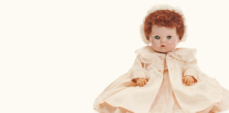 Local historian and longtime T/m volunteer docent Ann Smiley luckily held onto one of her most cherished toys, a small Tiny Tears doll. In the exhibit, Ann recounts playing with Tiny Tears in the early 1950s. Since she didn’t ever babysit or have children as an adult, she fondly thinks of her playtime with the doll as her sole motherhood experience. We’ll take a look at Tiny Tear’s unique features next time.