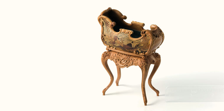 The ingenious solution? Old paint tubes! LaRoche cut apart some of her used paint tubes and removed their inner lead liners. She flattened the liners, fitted them to the interior of the jardiniere’s basin, and voila! Every detail of the jardinière, from the precise carvings to the basin’s liner, matched the full-scale piece. After fourteen years of work, the jardinière was finally complete and ready for its place in the Masterpiece Gallery at T/m! We hope you enjoyed this journey through LaRoche’s creative process and are as inspired as we are by her ingenuity and dedication!