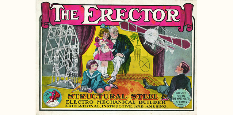 We aren’t sure exactly when he found the time to sleep! Surrounded by the marvels of 20th century industrial architecture trends, Gilbert managed to find enough free time to create the first Erector Set in 1913. With it, he managed to bring the realism of these new technologies to the hands of American children. His hope was that the set would inspire the progression of these novel ideas for generations to come. A 2013 exhibit at The Eli Whitney Museum and Workshop called The Erector Set at 100 traced the century-long legacy of Gilbert’s famous toy and connects it to the modern maker movement’s focus on technology and DIY.