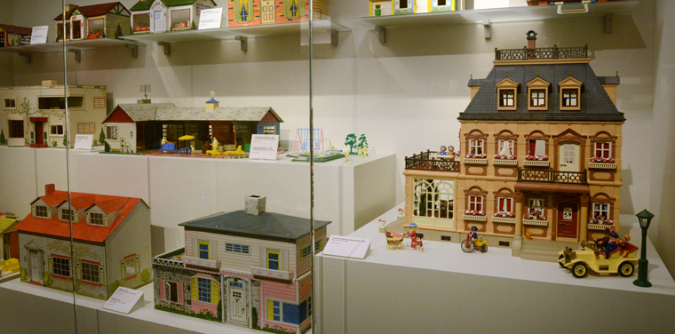 By the twentieth century, dollhouse play focused more on imagination than household management (thank goodness!). The museum’s Tynietoy dollhouse is now on display with recent acquisitions to the collection, including a 1974 Fisher-Price Play Family “A” Frame and a 1950s Louis Marx and Company “L” Shaped Ranch Dollhouse complete with a swimming pool!