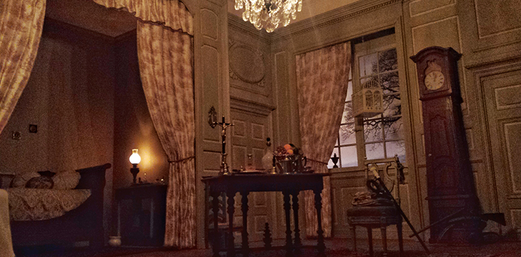 David Iriarte Martinez makes 1:12 scale houses and room settings that are fully researched to be consistent in style and period. His limited edition and unique miniatures are authentic reproductions that display various techniques, including inlaid wood, bone details, decorative painting, and ormolu.