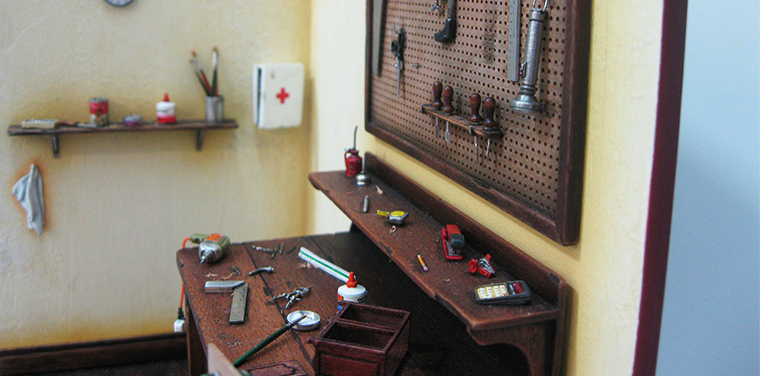 José María Bolio uses painting, sculpture, and static modeling to create his miniature accessories. Trained as a sculptor, he has been a professional model maker since 1992 and endeavors to recreate objects, characters, situations, and atmospheres in realistic miniature.