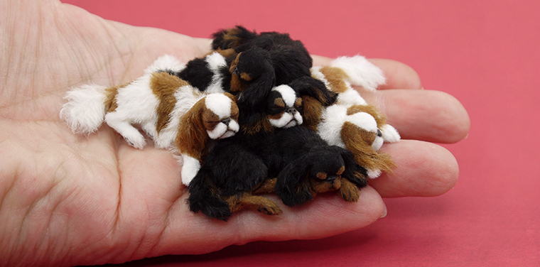 Kerri Pajutee is motivated by the desire to replicate the beauty and energy of animals in 1:12 scale. She developed a technique to combine polymer clay with layers of natural fibers: wool, alpaca, cashmere, and silk. This combination allows Pajutee to infuse her art with character and expression.