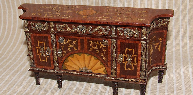 Christopher Malcomson’s marquetry furniture focuses on William and Mary, Georgian, and Victorian styles. He views past masters’ work as an outstanding pallette from which he can take ideas. Each complex marquetry design he creates has an experimental element as he acquires new techniques.