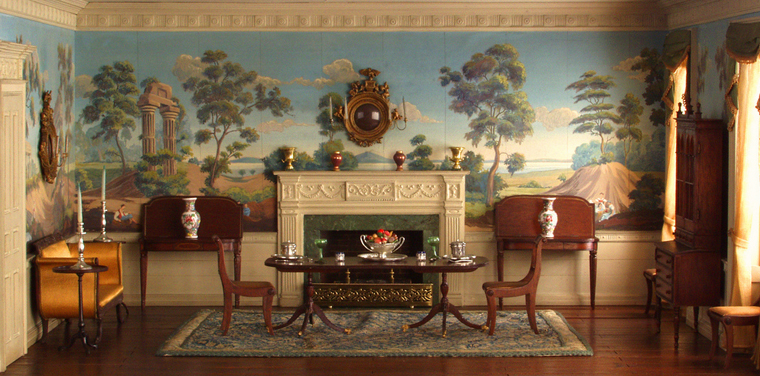 While viewing the fine-scale miniature collection here at T/m, many of our guests quickly draw a comparison to the famous Thorne Rooms at The Art Institute of Chicago. Created in the 1930s and ‘40s by Narcissa Thorne and numerous artists, these miniature room settings depict historical decorative arts periods in America.