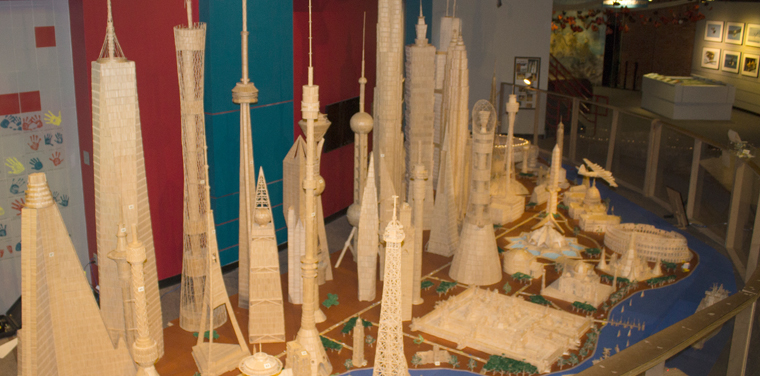 Stan Munro builds famous landmarks out of toothpicks. What started as a 5th grade art project turned into Toothpick City. The City features more than 50 famous structures from around the world (the Space Needle, Eiffel Tower, Golden Gate Bridge) made out of six million toothpicks and 170 liters of glue. Now on permanent exhibit in a Spanish museum, Munro has continued crafting, including Toothpick City 2 at the Museum of Science and Technology in Syracuse, New York.
