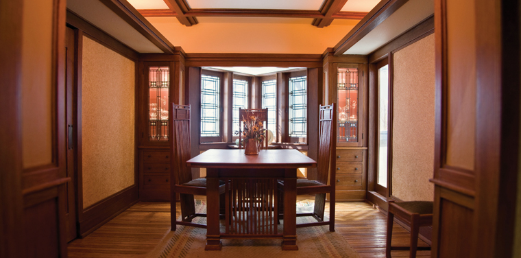 With their dramatic horizontal lines, open floor plans, and cantilevered roofs, architect Frank Lloyd Wright’s homes are some of the most iconic in American history. Wright’s famous Prairie Style of domestic architecture took inspiration from the Midwestern landscape. The William E. Martin House is a beautiful example of one of these homes, coincidentally only a few blocks away from Wright’s own home and studio in Oak Park, Illinois. Today, the home is still a private residence, so your best chance to see it up close is here at T/m!